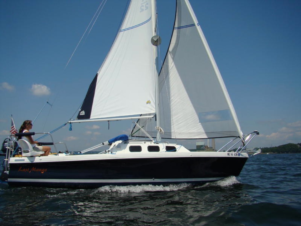 Obviously, with its heavy construction and collective creature comforts, the cruising Rhodes is not a pure racing machine. Not so obvious is that the 22s fine entry and low wetted hull shape follow the lines of the Rhodes 19 so the 22 has an inherently good turn of speed. For those younger at heart than the company owners, willing to forego some of the built in lazy sailor conveniences and add some of the racing fans come fly with me gear, this is a fast trailerable that is even faster - if you go for the RCR (Rhodes Club Racer) version.