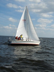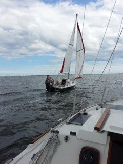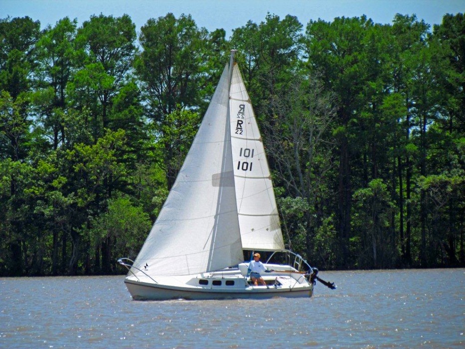 Early Rhodes, like the new RCRs, were lighter built than the new cruising 22s, so, like the RCRs, are faster, as owner Lou tells owner Lee: